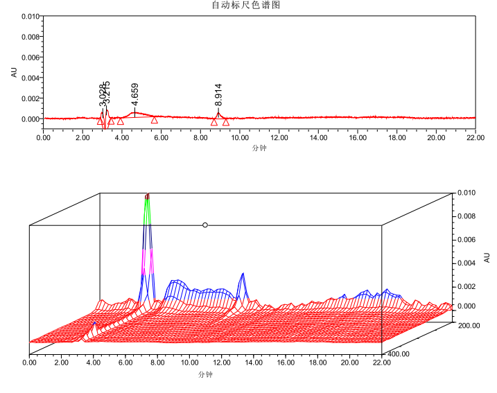 各位大侠, 本人在鉴别药用乙醇和分析纯乙醇时,发现前者在HPLC谱图上多出一个9min的峰,目前不知道这个是什么物质,可否有人帮我分析一下?? HPLC测试条件: 波长277nm; 流动相:甲醇:乙腈:水=60:16:24; 流速:1.0ml/min; C18分析住; 柱温:40℃; 谱图如附件 谢谢各位大侠!!! 222.png |