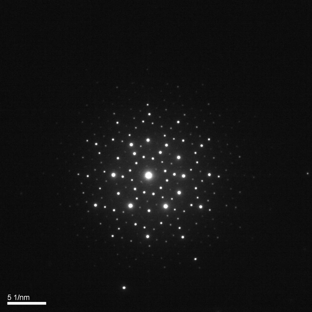 请问这样的衍射花纹是准晶吗,如果不是准晶那是怎么产生的呢?