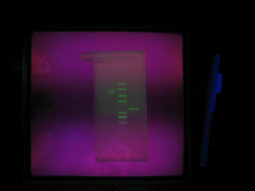 如图,中间的MARKER从下往上数第四条(750bp)是100ng,再往上的条带是50ng。右边为PCR产物,应该是50ng吧,左边为质粒,那大概是多少ng呢……求大神分析……质粒是准备用来做双酶切后回收,然后酶连转化用的…… IMG_2181.JPG |