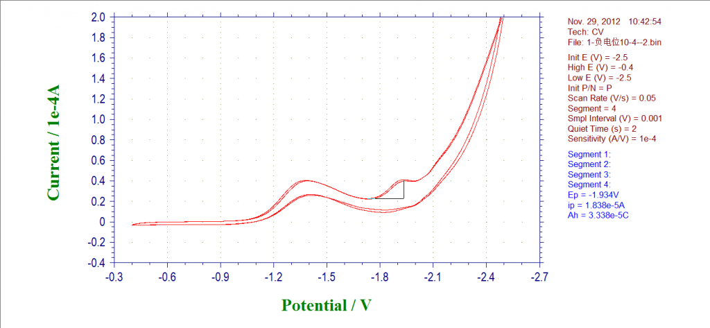 今天测一个配合物的CV和昨天测的非常不一样,同一个物质,只是扫速不一样,为什么差别这么大呢,而且图1在1.4V处的峰怎么那么怪呢,实在是解决不了了,求指点。色谱纯乙腈,支持电解质是四丁基六氟磷酸胺,工作电极是铂盘电极,参比电极是非水相的Ag/Ag+电极,对电极是Pt丝电极 1 2 |