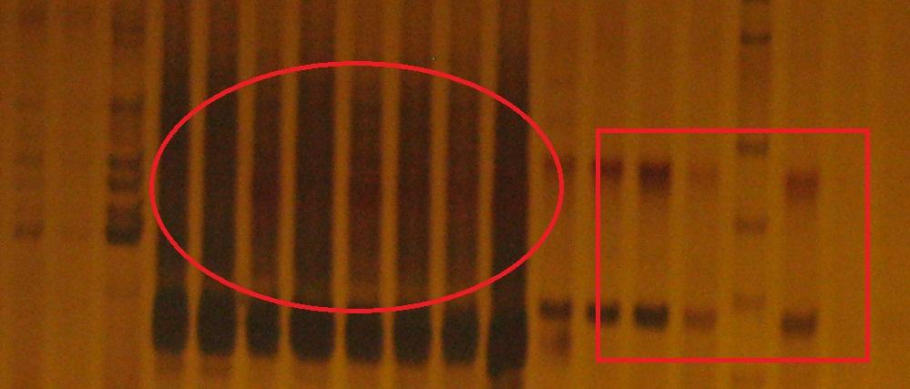 我最近跑了一块page凝胶电泳 那位高手帮忙分析下为什么条带会出现这种问题? 圆圈里的电泳道理为什么会是黑的 条带为什么有深有浅? IMG_0326.JPG [ Last edited by 为你学习 on 2012-11-29 at 17:49 ] |