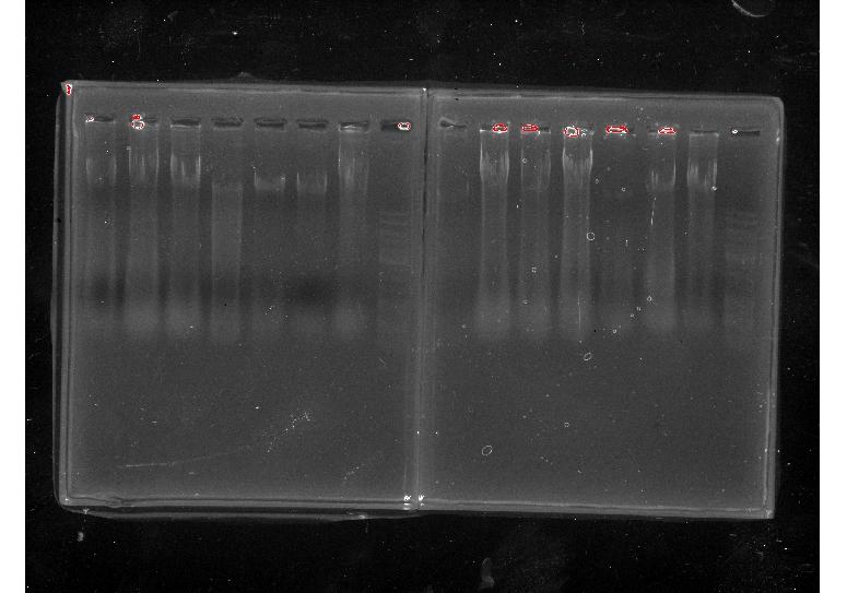 最近在提放线菌的DNA,想检测一下是否提出DNA了,就直接跑了电泳,结果跑出来的结果是如此的不堪,是怎么回事呢,千万表告诉我是提DNA过程中出现问题了,50多株菌呢,不要让我哭死. HP 2012-11-29 15 时 57 分-右1左2.jpg HP 2012-11-29 15 时 57 分-右1左2.jpg |