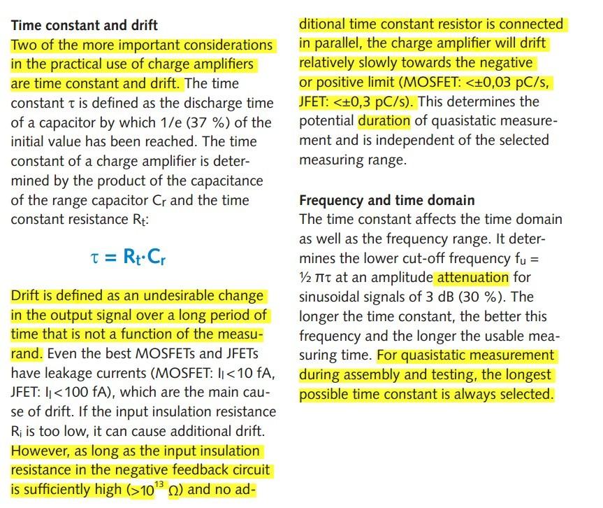 一个Klstler的dynanometer和Kistler Type 5010 Charge Amplifier 连接时,目前y方向上只能设置在time constant为short的情况下,当设置为long和medium的时候,信号drift很快,很严重,不知道是怎么回事。 也不知道time constant设置为short对力的测试结果是否有影响,哪位给个建议?目前已经更换过Amplifier和cable了 |