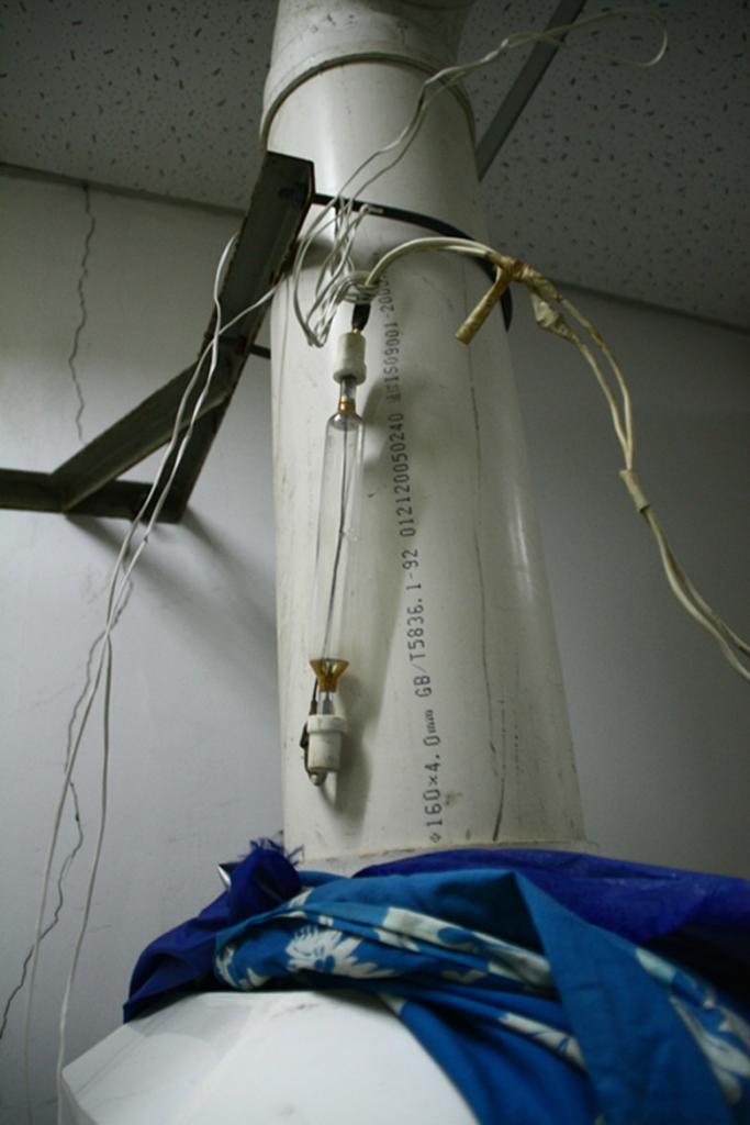 | 你给出的照片和长度确定是500W长弧高压汞灯,主要波长在365nm,新灯透过石英冷阱和水层全光谱强度在350mw/cm2,这么陈旧不确定光功率密度了。。。但是,你这么放着是做照明用吗?危险之至啊!汞灯使用一定要有保护,高压汞灯因为内部压力很高,而且里面又高纯水银,所以被戏称为水银炸弹!千万别再这么用了!论文诚可贵,生命价更高,若为实验故,不值啊!快抛。。。 |