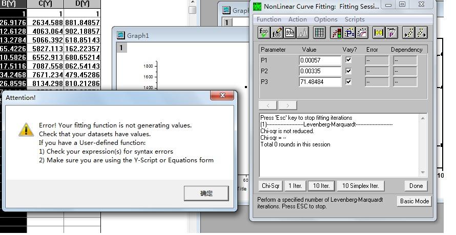 求助:origin8.0 自定义非线性拟合,参数拟合值与设定初始值一样