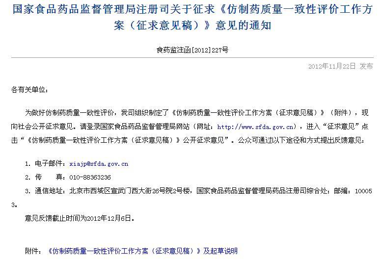 《仿制药质量一致性评价工作方案(征求意见稿)》 已有1人参与