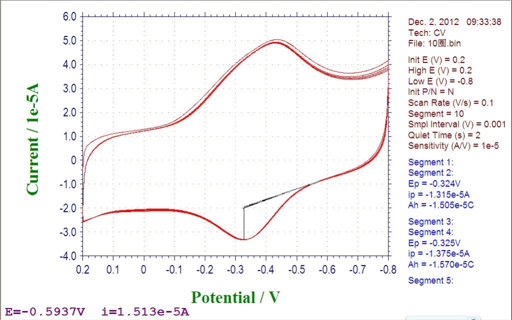 血红蛋白和核壳材料混合 固定在玻碳电极上 扫出了这样的图 感觉有点问题 求大神指教 能力有限