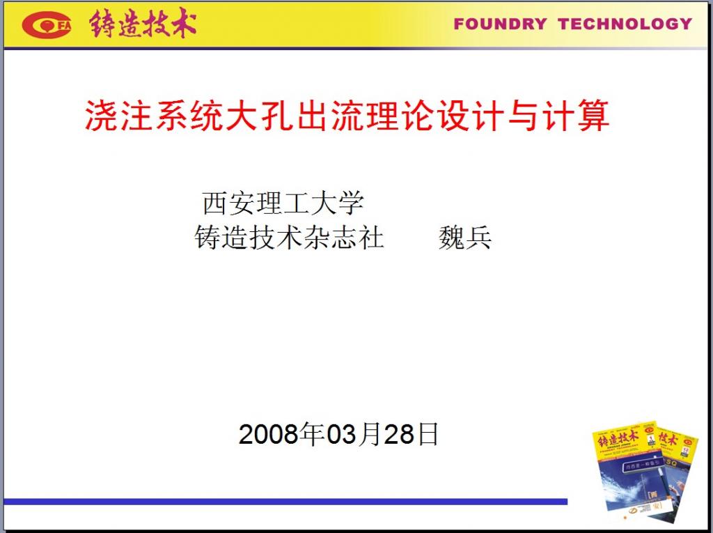 本内容由用户自主发布,如果其内容涉及到知识产权问题,其责任在于用户本人,如对版权有异议,请联系邮箱:xiaomuchong@tal.com - 附件 1 : 魏老师的计算浇注系统讲课资料.rar
