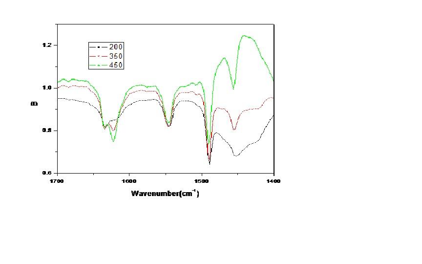 基线跟很多因素有关系(例如背景的扣除等等,使用不同时间不同条件采出的背景,得到的谱图就会不一样。所以这也是个经验活),但你这个漂移是不影响分析的。 你提到会不会是薄片在加热过程中发生形变,我认为不可能。如果你想检验的话,重复做一下就好,如果真是形变的问题,你每次做出来的都不一样。 你的实验我认为是有问题的,不知道你做的是哪种分子筛,但是酸性很强的分子筛在450度吸附吡啶做红外,基本上就不会出峰了,但你的峰依然很强。而且随着温度的升高,峰强度应该降低,但你的似乎在升高。所以我建议你检查下实验步骤,看看有什么问题没。 |