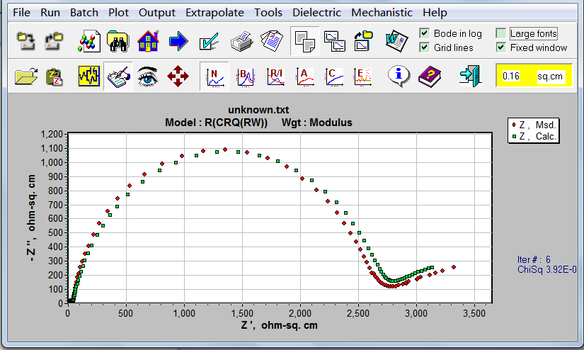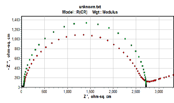 index fixed symbol start end % error ------- ------ --------- -------- ------- ----------- 1 0 R 37.6 37.59 6.815 2 0 C 1.415E-13 2.805E-14 7.984E9 3 0 R 3997 3996 79.99 4 0 Q 5.912E-6 5.911E-6 16.09 5 0 n 0.864 0.8641 16.32 6 0 R 7867 7879 147.5 7 0 W 0.005558 0.0005575 399.2 ------------------------------------------------------------------------- 以上是拟合等效电路后导出的数据,想求Rct,到底应该是哪一项呢?三电极体系,工作电极为CPE。求各位大侠指点,非常感谢 |