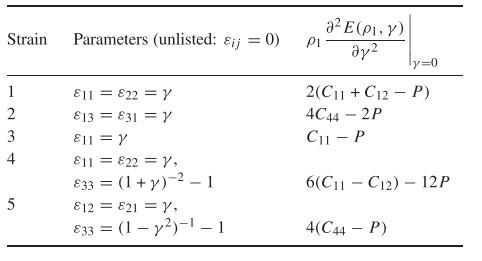 咋看LZ的计算方法这么纠结呢?有没有看M J Mehl的文章呢?对于立方晶(看LZ只需要C11,C12和C44),只需要计算三步: 1,使用EOS拟合计算体模量:B0 = ( C11 +2C12 )/ 3; 2,假设形变为x,则有形变矩阵:e1=x, e2=-x, e3=x^2/(1-x^2),其他应变量为零。再把x-E(x)关系拟合方程dE=V0 (C11-C12)x^2,其中V0是平衡位置体积,dE是形变后总能与平衡位置总能的差。然后联立该结果和体模量得到C11和C12。 3,对于C44,进行形变为:e3=x^2/(4-x^2), e6=x,其他向量为零。拟合方程 dE = 0.5 V0 C44 x^2。 |