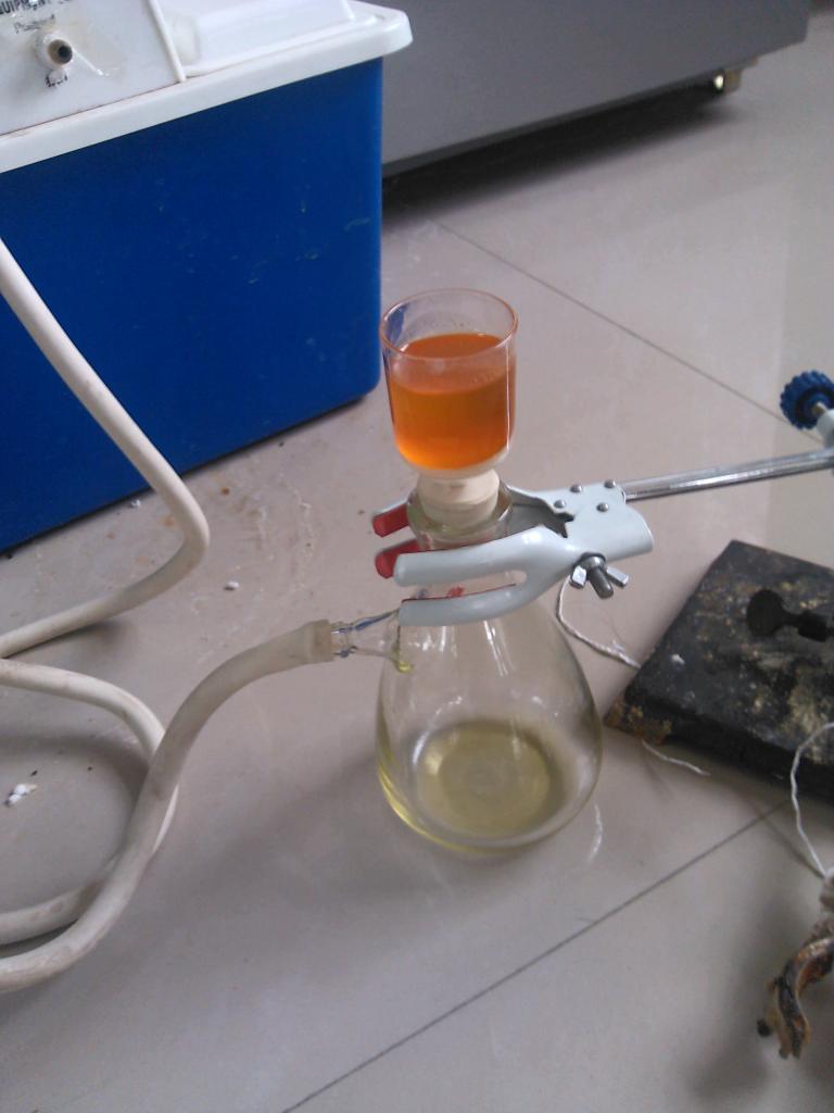 均三甲苯内溶有少量醇铝化合物,理论上加入少量水后会成氢氧化铝固体,但是实际操作时却得到了一堆澄清透明粘稠胶状物,极难抽滤(胶状物质量远远大于理论上氢氧化铝的质量)。 IMG_20121201_090038.jpg |