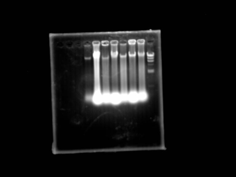 我采用CTAB法提取的真菌DNA,可是电泳图这样可以么,我用真菌通用引物PCR,怎么都P不出来,望高手指教下,看是否我提取的有问题,还是哪里的问题,我上一批也是同样的方法,只是最后的条带没有那么亮,都P得出来。