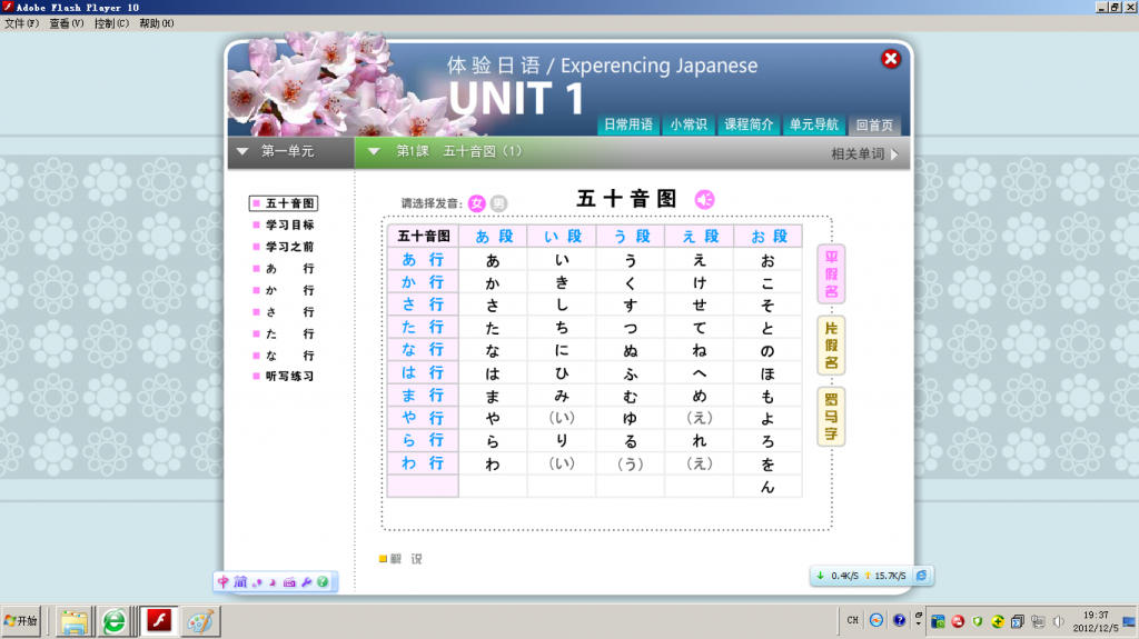 李妲莉的《体验日语1》随书多媒体课件,课件中融入了文字、声音及丰富的插图,为教师和学习者创造了一个寓教于乐、生动愉快的日语教学环境。该课件是李妲莉主编的《日本语初级教程》多媒体课件的升级,操作更方便,见面更漂亮。 迅雷快传下载:http://kuai.xunlei.com/d/JUFCPDHGEADW 体验日语2.png [ Last edited by fish1123 on 2012-12-5 at 19:48 ] |