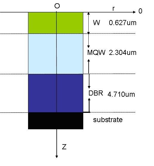 第二步:画三个矩形分别代表window层、MQW层、DBR层