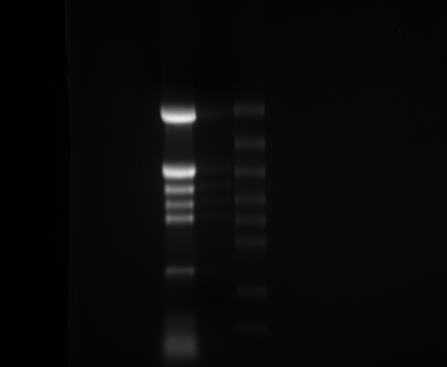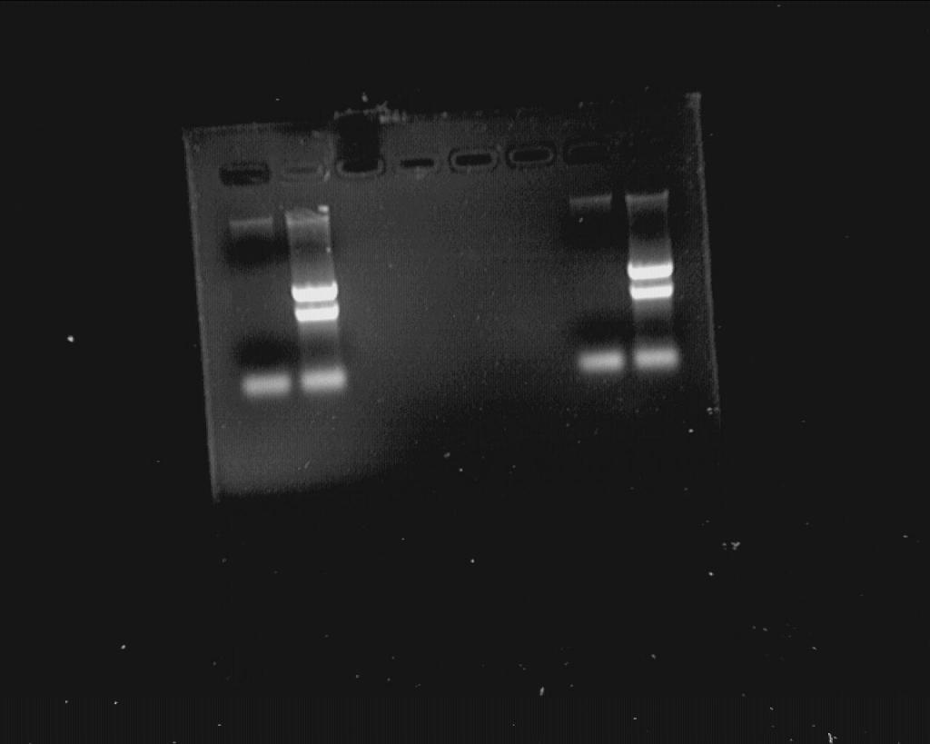 我感觉不能是基因组DNA,基因组DNA 130V电压30分钟也不能跑到这么远,而我的RNA是用100V电压跑15分钟,所以推测不是基因组DNA...