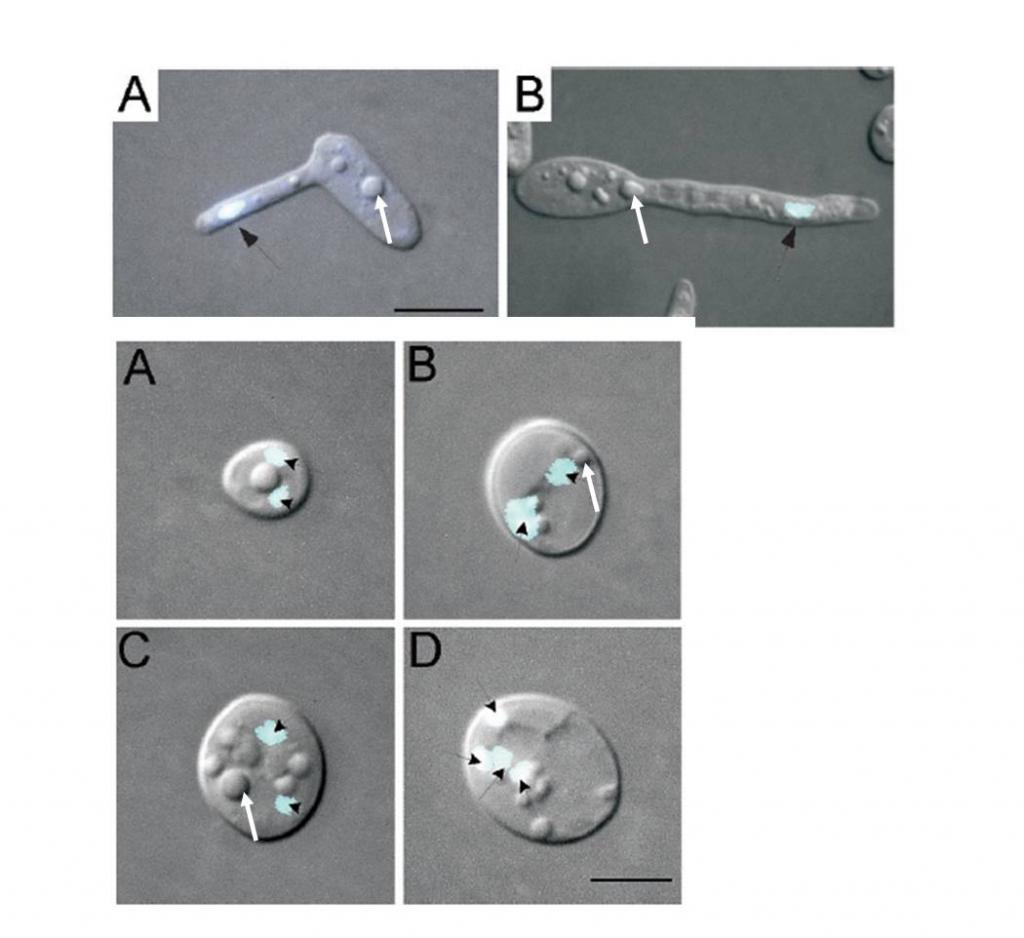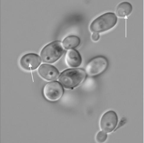 请教高人,这个白色念珠菌(一种类似于酵母菌在真菌)中白色箭头标注的这个结构是什么呀?酵母中也有这样的结构,本人查阅很多文献未果,故而来此请教高人。