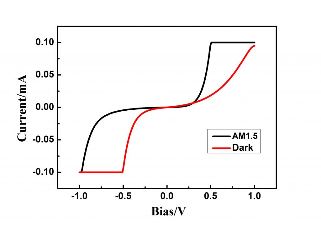我是水热直接成SnS薄膜,然后溅射一层硫化镉/ITO,测试的曲线如下图,请问各位大侠,如何解释此曲线,万分感谢!