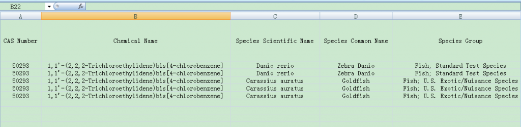 大家好,作为菜鸟选手向各位前辈求助。我在EPA的一个网站上查到了关于一些药物LC50的excel表格,但是表格里面很多缩写都看不懂,尤其是表格第一行的一些,例如BCF 1 Value Op;而下面的表格中也会出现不懂的缩写词,例如NR-ZERO、NR-LETH。以DDT为例,我把excel表格发到附件上来供大家来参考。 真心求助哈 |