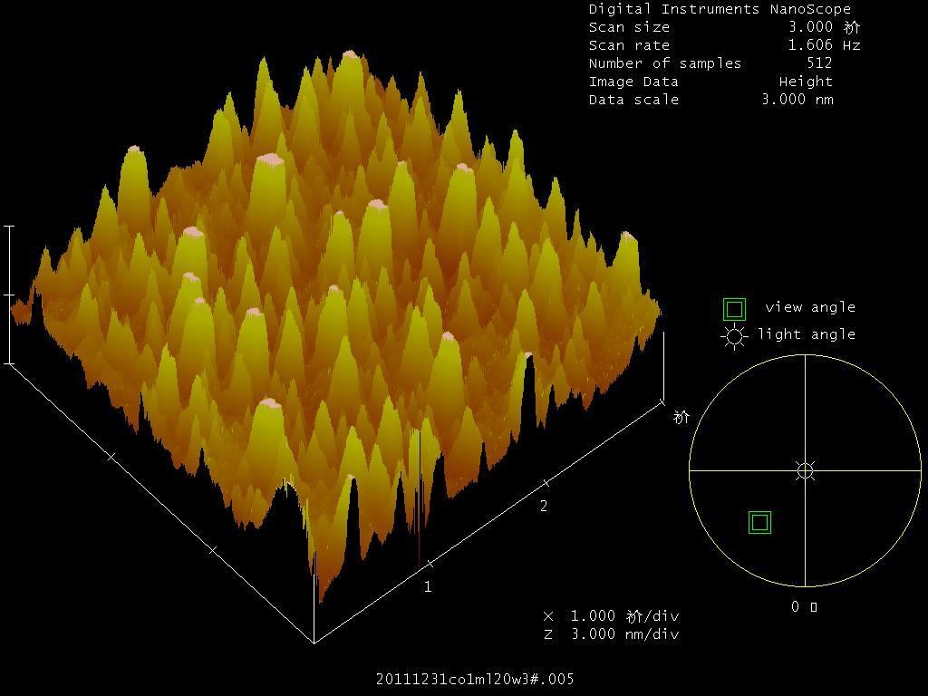 做量子点用AFM测试的三维图为什么顶端老是尖的?按成核理论我觉得应该是岛状的,大家觉得是测试的问题还是别的问题?测试时怎么调参数就可以使三维图的顶端形成岛状了?谢谢指点 20111231co1m120w3#3d.jpg |