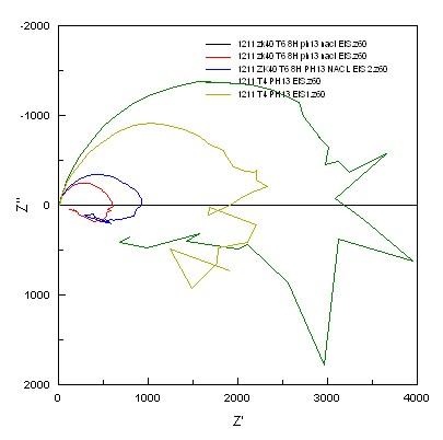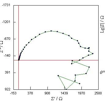 如图,用电化学工作站测试镁合金的EIS,辅助电极铂电极,参比电极甘汞电极,工作电极镁合金,在PH13的3.5%的NaCl中进行,每次测得的EIS图,在低频区都非常的不规律,无法分析啊,求大神帮忙 QQ截图20121211115201.jpg EIS.jpg |