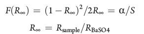 我的研究中用到如图的Kubelka-Munk公式:请问作固体reflectance反射率谱的时候,硫酸钡作参比,最后测sample的时候仪器测试软件自动会扣除硫酸钡背底,请问是如公式的做除法还是作减法的? 急求各路高手答案 ![]() 1.jpg |