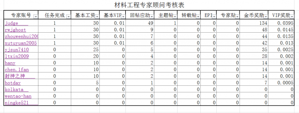 骚瑞,拖到现在才统计,各位专家顾问查看下统计是否有误,考核按照各位在材料工程的回帖数目来计算,请回帖领取金币,VIP由区长开贴发布。