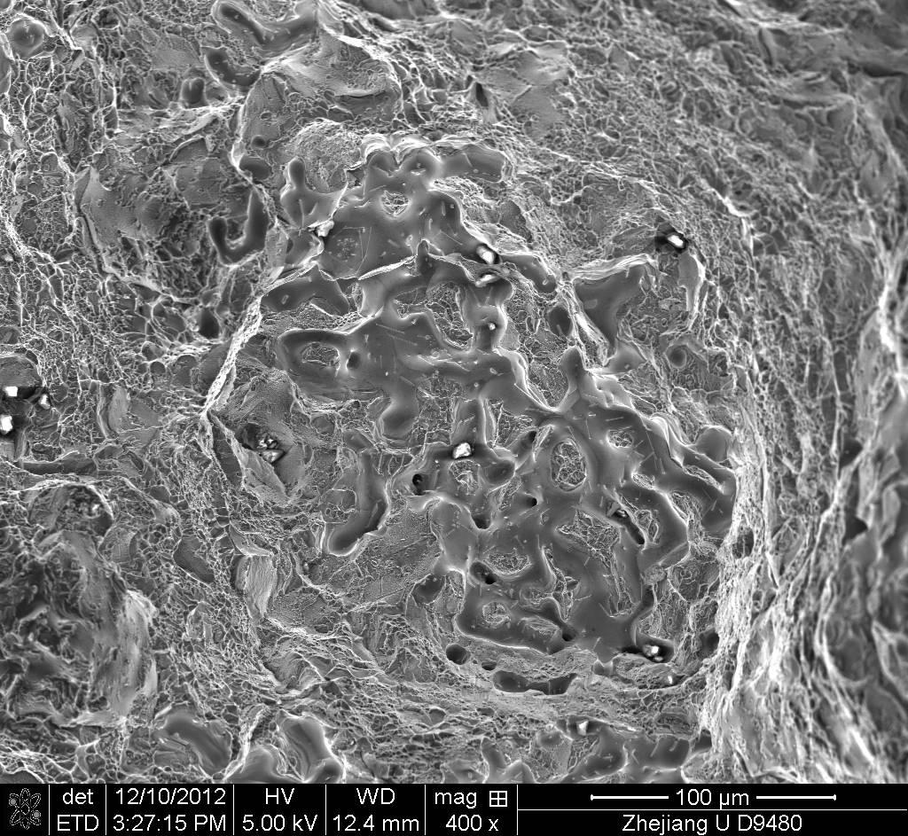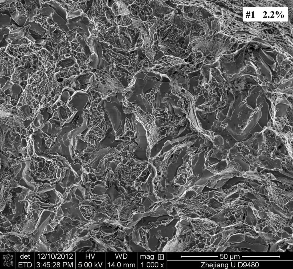 以前没做过断口分析,真是一头雾水,看了些书,还是不太会分析,求助各位高手,希望不吝赐教~多谢~ 两种铝合金,拉伸率分别是2.2%和5.3%,从断口上能看出区别吗?是什么断裂方式? 最后一张图片上一些衬度怪怪的地方是什么造成的? 图片1.jpg 图片2.jpg 图片3.jpg 图片4.jpg 图片5.jpg |
