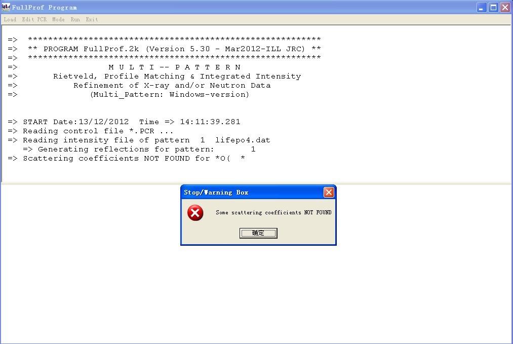 用fullprof精修,出现一个错误,不知道是哪里参数设置有误~