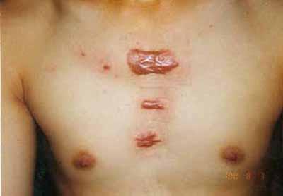 感谢各位,有谁知道哪里能治疗这个病的老中医或老医师啊,他的病有四五年了吧,家里人都没有得的,医生说是体质虚,在后备和胸前都长了瘢痕疙瘩!像个肉瘤似的,听他说 有时还痒,别扭! 我们去了小医院 开了药不见好,去了天津肿瘤医院,大夫说是瘢痕 做手术还会复发,用药也不好用(不是专家说的)!去了天津有名的天津总医院,大夫有时瘢痕,给开了点药,也不见太好!网上购了药 ,他说也不能用!!现在都给我急死了