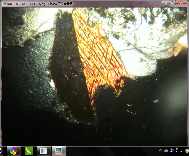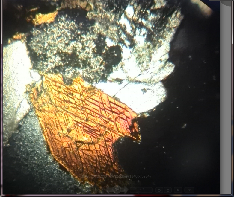 某一风化很严重几乎破碎的花岗岩薄片。怎么好像是角闪石。好像还有挺多的。不知道是我的偏光镜有问题还是。。好像又不是平分解理的地方消光。怎么看都不像裂理啊。为什么风化好像很严重的还能保持这样好的角闪石。。。我先假设是角闪石。 表面覆盖好像铁矿类的,正交跟单偏下都全消光的 正交 双晶吧 单偏 |