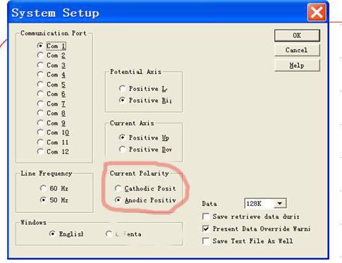 小弟刚开始接触电化学工作站,在system setup 里有一项不懂,current polarity这一项中的两个选项是什么意思,谢谢!