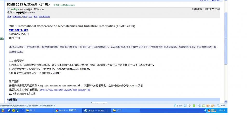2013 ICMII 竟然用 <nidaye@vip.163.com>,你会参加吗?