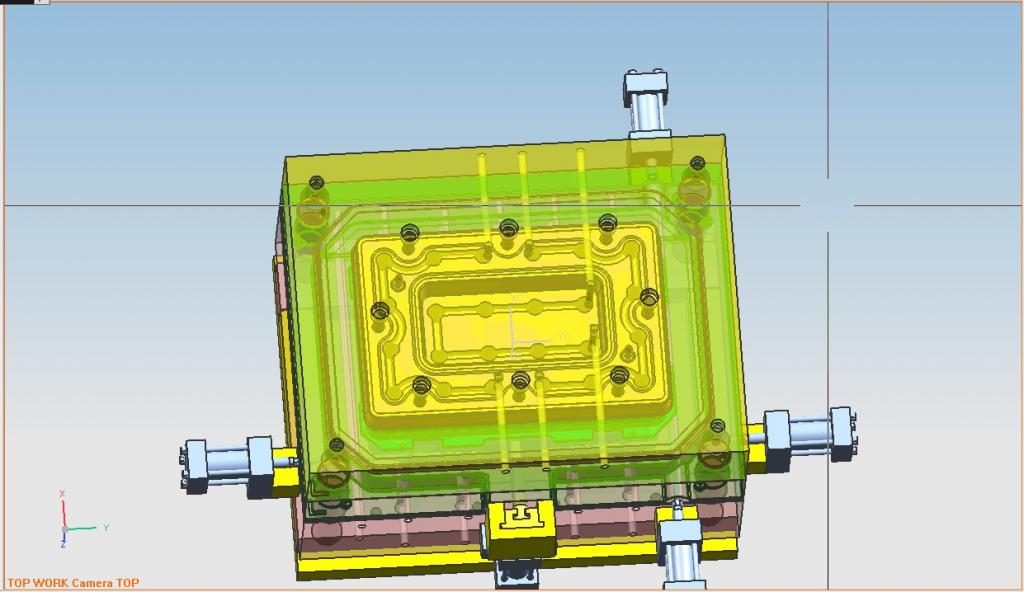 各位大侠,大家好。 我现在上传的这张模具图,型芯部分采用的是喷流式冷却系统(深黄色部分的18个大孔,孔与孔之间是用槽连接的)。模具中只设置了三个进水口和三个出水口。 我要在moldflow中建立此冷却系统,但是不知道喷流管与管之间是怎么连接的。请求大侠帮助。 muju.jpg |