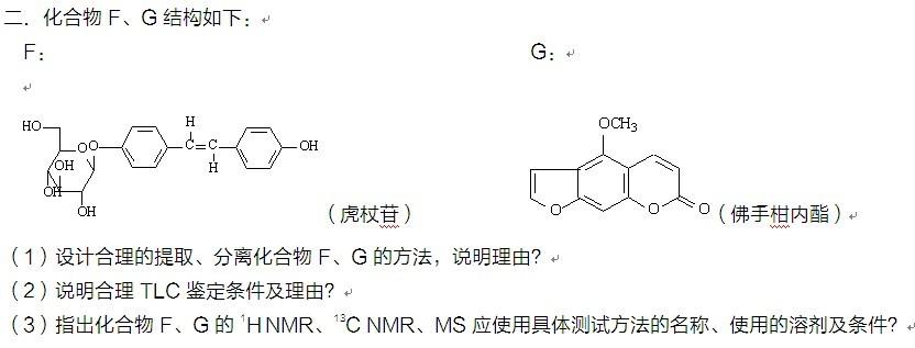 个人回答,仅供参考 1,虎杖苷结构含糖,又有酚羟基,极性相对比较大 佛手柑内酯,极性小 不知道这2种化合物是混合在一起(在同一中药或复方中),还是在不同的药材中提取 如果是混合在一起,用75-90%的乙醇加热回流提取可以全部提取出来,然后用萃取的方法,佛手柑内酯可以萃取到氯仿(或醋酸乙酯)部位,虎杖苷可以留在水部位或萃取到正丁醇部位。然后再用柱层析进一步纯化。 如果在不同药材中分别提取,佛手柑内酯可以用95%的乙醇热提,再萃取或直接柱层析分离纯化 虎杖苷可以用热水,或低浓度的乙醇热提,再柱层析纯化 2,TLC,虎杖苷可以用BAW系统,或氯仿甲醇(7:3-6:4)系统,显色剂可以用紫外灯直接看荧光(共轭双键长)或三氯化铁(用于鉴别酚羟基) 佛手柑内酯用石油醚:醋酸乙酯系统,紫外灯线检测(共轭双键长) 3,核磁,虎杖苷可以氘代甲醇、氘代吡啶、氘代DMSO做溶剂,佛手柑内酯用氘代氯仿做溶剂。已知化合物做氢谱碳谱就差不多了,解析不出来可以加二维谱 质谱,虎杖苷用甲醇溶解,常用ESI离子源可以分析中等极性到极性的化合物,佛手柑内酯用氯仿做溶剂,要用APCI离子源可以分析非极性到小极性的化合物 |