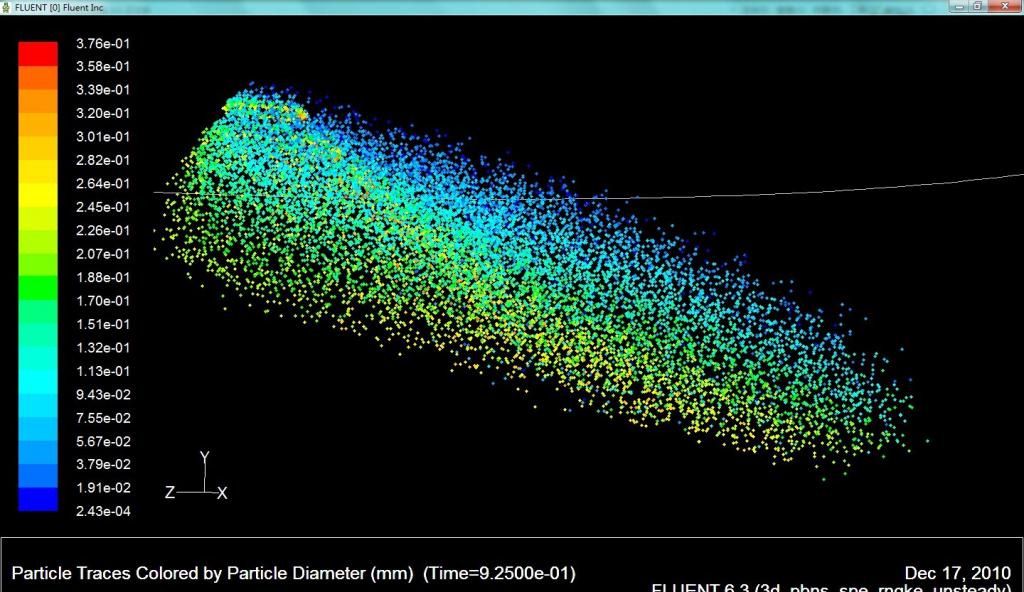 喷嘴类型选择fluent中自带的压力旋流式喷雾,颗粒类型选择的是droplet,液滴密度为系统默认的,不知道这样 ...