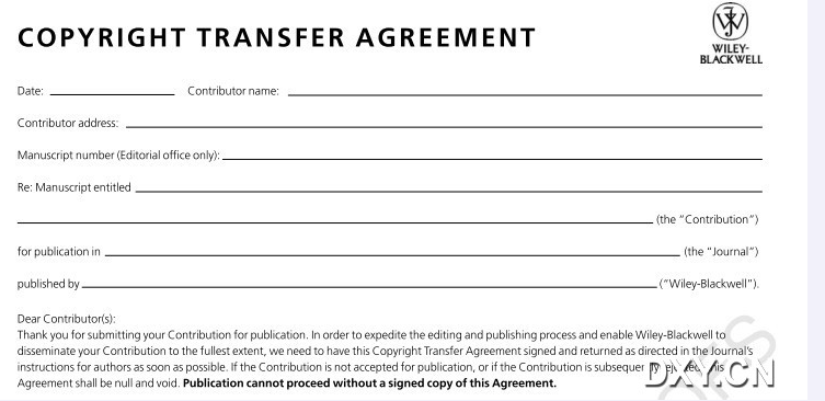 Wiley-Blackwell版权转让协议填写求助