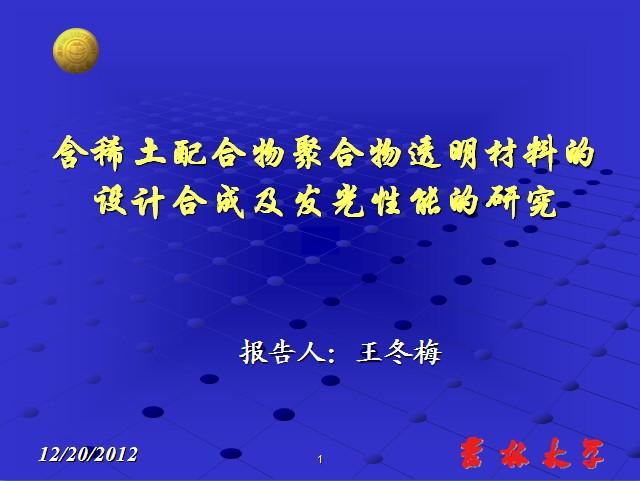 【课件】含稀土配合物聚合物透明材料的设计合成及发光性能的研究(吉林大学)