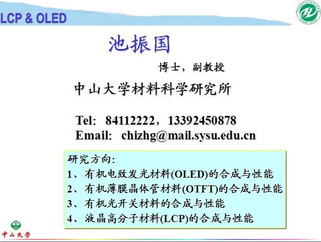 中山大学池振国教授介绍了今日化学专题之 1、有机电致发光材料及器件 2、液晶高分子材料 j1.jpg j2.jpg j3.jpg j4.jpg j5.jpg j6.jpg [ 来自科研家族 材料家族 ] |