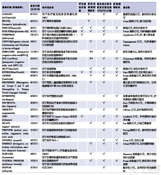 FDA/欧盟/日本 08-12年全球批准新药汇总报告