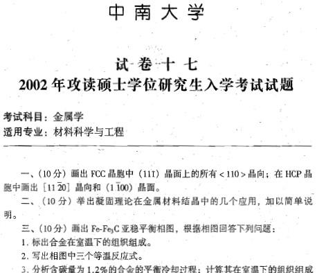 【求助】求中南大学 粉末冶金专业考研历年真题