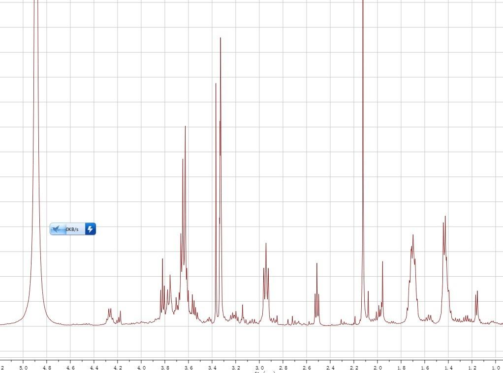 最近从微生物中得了个化合物,三氯化铁显紫红色,极性挺大,氯仿:甲醇 = 7:3能跑到0.4左右。254、365nm波长均没有吸收。化合物还不纯。做了核磁,分子量不知道,请教各位高手看看,能有什么信息,谢谢。