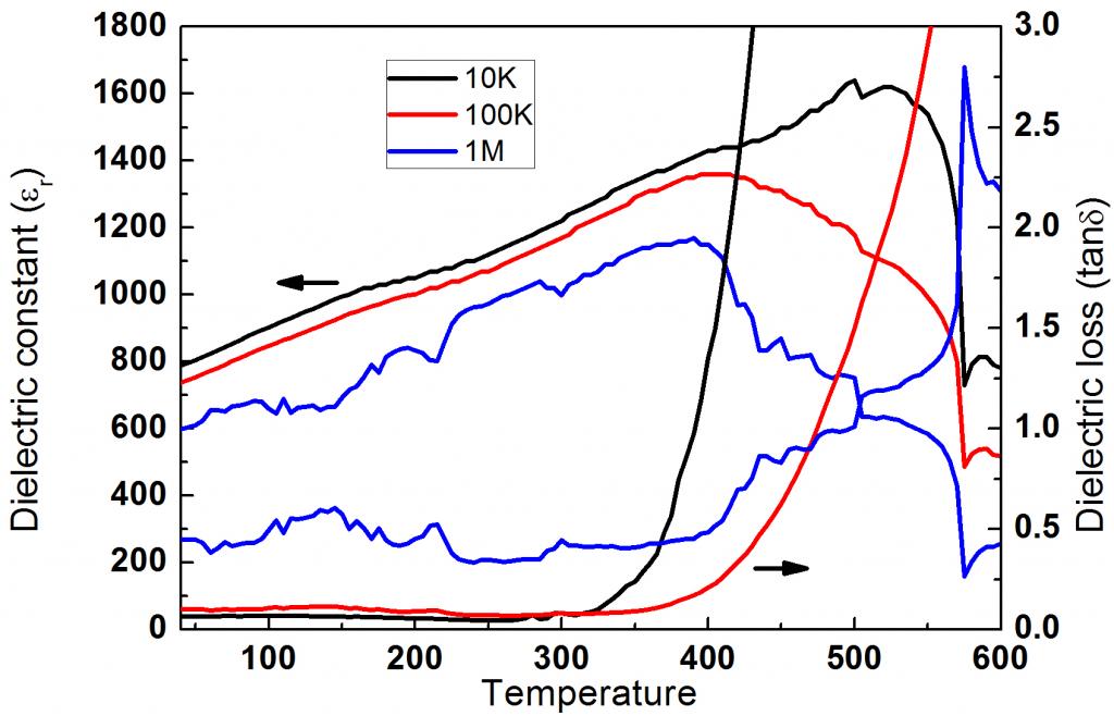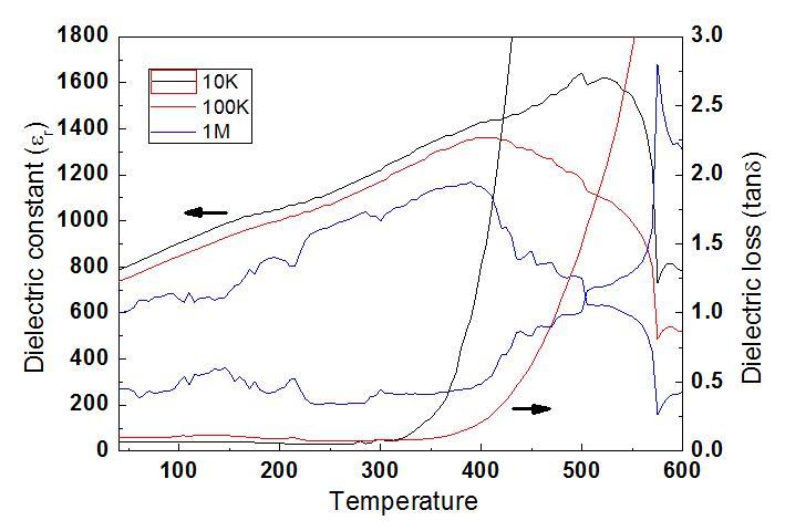 铁电薄膜的变温介电,图中高频诡异的变化不知如何产生, 求指教,交流~~~