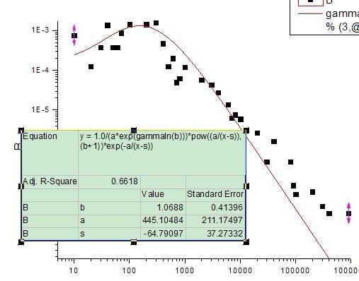 这是我编写的,不知道对不对啊。y = 1.0/(a*exp(gammaln(b)))*pow((a/(x-s)),(b+1))*exp(-a/(x-s))