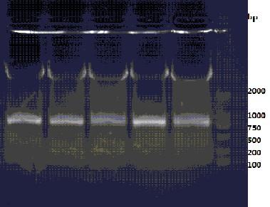 电泳图所示为,双酶切载体后,跑的胶,800bp左右的是切下的片段,后面呈笑脸形的很淡的是酶切后的载体,奇怪的是载体为何会跑成那种样子,而且载体比片段还要淡。。。请各位帮我分析一下~谢谢,多多交流。