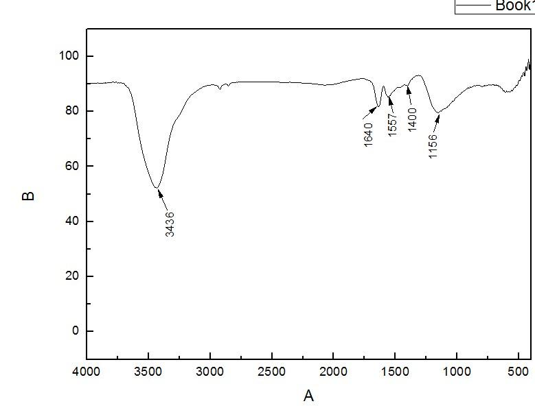 美女,你的样品的水没有除干净吧?你把压好的片子放在红外灯下烤十几分钟再去测,如果3400和1640的峰没有减弱,就说明表面有羟基。而且你的样品量有点少,很多东西不能确定,可能存在的是羰基,羟基,羧基(量很少)