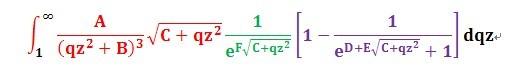 函数f4(qz)在qz=1e3*kf时已经为0,将f4在(1,Inf)积分,按说,积分上限取到1e3*kf就可以了,事实上,积分上限在10*kf到1e3*kf之间时,积分结果是一致的,但是如果把上限放的非常大,(1,1e8*kf)这时候,积分结果变化又非常大。 后进末学,求大贤指点一二,感激涕零,顿首再拜! global EF A D h2 x Epsilon0 Epsilons Epsilonh e m m2 Ns kb T B DP ul ut rho E0 kf K2 KL KT; kb=1.38e-23; T=3; %温度 h2=1.055e-34; x=0.3; %Mg% Epsilon0=8.8542e-12; %真空介电常数 Epsilons=7.9; % 间接 Epsilonh=3.7; % a1=(3.250+0.05*x)*1e-10; c1=(5.204-0.17*x)*1e-10; a2=3.250e-10;c2=5.204e-10; % e=1.6022e-19; %电子电荷 DP=3.8*e; rho=5760; ul=5e3; % ut=2.1e3; % cl=14.1e10; % ct=2.47e10; % h15=-0.37;%压电系数间接引用 h31=-0.62; h33=0.96; ela2=(8*(2*h15+h31)^2+12*(2*h15+h31)*h33+15*h33^2)/105; % eta2=(6*(h33-h15-h31)^2+16*(h33-h15-h31)*h15+48*h15^2)/105; K2=ela2/(Epsilon0*Epsilons*cl)+eta2/(Epsilon0*Epsilons*ct); % KL=ela2/(Epsilon0*Epsilons*cl); KT=eta2/(Epsilon0*Epsilons*ct); m0=9.11e-31; m=0.26*m0; %自由电子 Vc=0.9*2.145*x*e;% sigmat=-0.054-0.038*x; sigmai=0.038*x;sigmab=0.054; deltaz=0.1e-9;%变分间隔 sigmad=1e17/1e-6*e*deltaz;%一 Ns=1.4e15; B=(12*m*e^2/(Epsilon0*Epsilons*h2^2))^(1/3)*(11*Ns/32)^(1/3); kf=sqrt(2*pi*Ns);%费米 E0=h2^2*B^2/(8*m)+3*e^2/(Epsilon0*Epsilons*B)*(11*Ns/16);% EF=E0+pi*h2^2*Ns/m;% f4=@(qz)B.^6./(B.^2+qz.^2).^3.*DP.^2.*h2.*sqrt(kf.^2+qz.^2)./(2.*rho.*ul).*(1./(exp(h2.*ul.*sqrt(kf.^2+qz.^2)./(kb.*T))-1)).*(1-1./(exp((h2.^2.*kf.^2./(2.*m)+E0+h2.*ul.*sqrt(kf.^2+qz.^2)-EF)./(kb.*T))+1)); >> quadgk(f4,1,10*kf) ans = 2.8824e-063 >> quadgk(f4,1,100*kf) ans = 2.8824e-063 >> quadgk(f4,1,1e8*kf) ans = 4.0394e-094 |