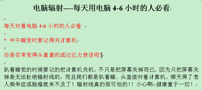 电脑辐射----每天用电脑4-6小时的人必看(转载)