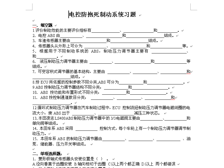 电控防抱死制动系统习题
