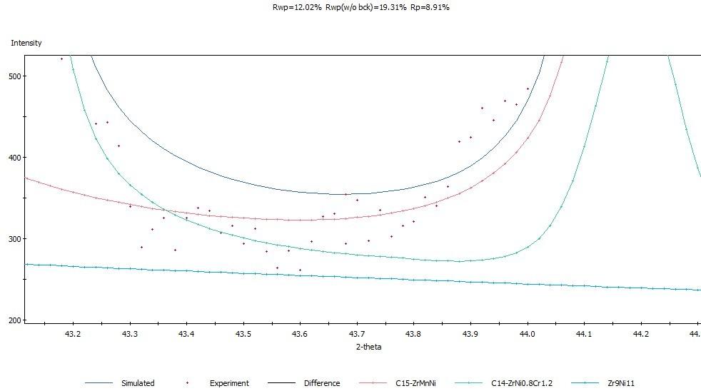 如图,我计算四个相的含量,但是出来的图只有三个相的,而且txt结果表明含有该相,而且图中没有拟合上的峰刚好就是没出来的这个相的峰位,求大神解答?
